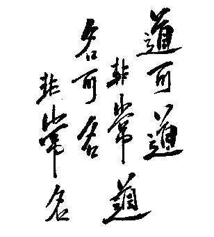 Die Kalligraphie links gibt die erste Zeile des Tao Te King wieder: